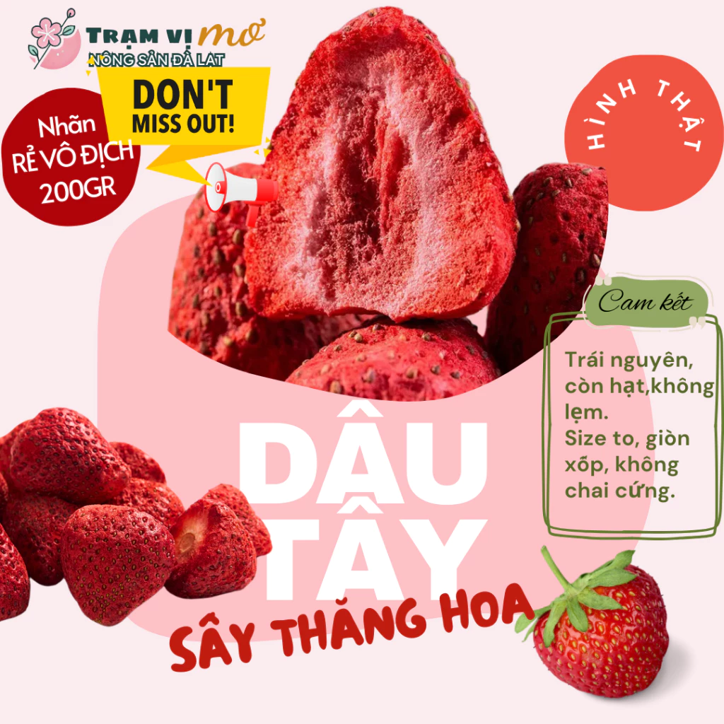 Với giá chỉ 76000 VND, Dâu Tây Sấy Thăng Hoa là một lựa chọn hợp lý cho những người muốn tận hưởng dâu tây sấy giòn tan một cách lành mạnh. Bạn có thể mua sản phẩm này tại đây.