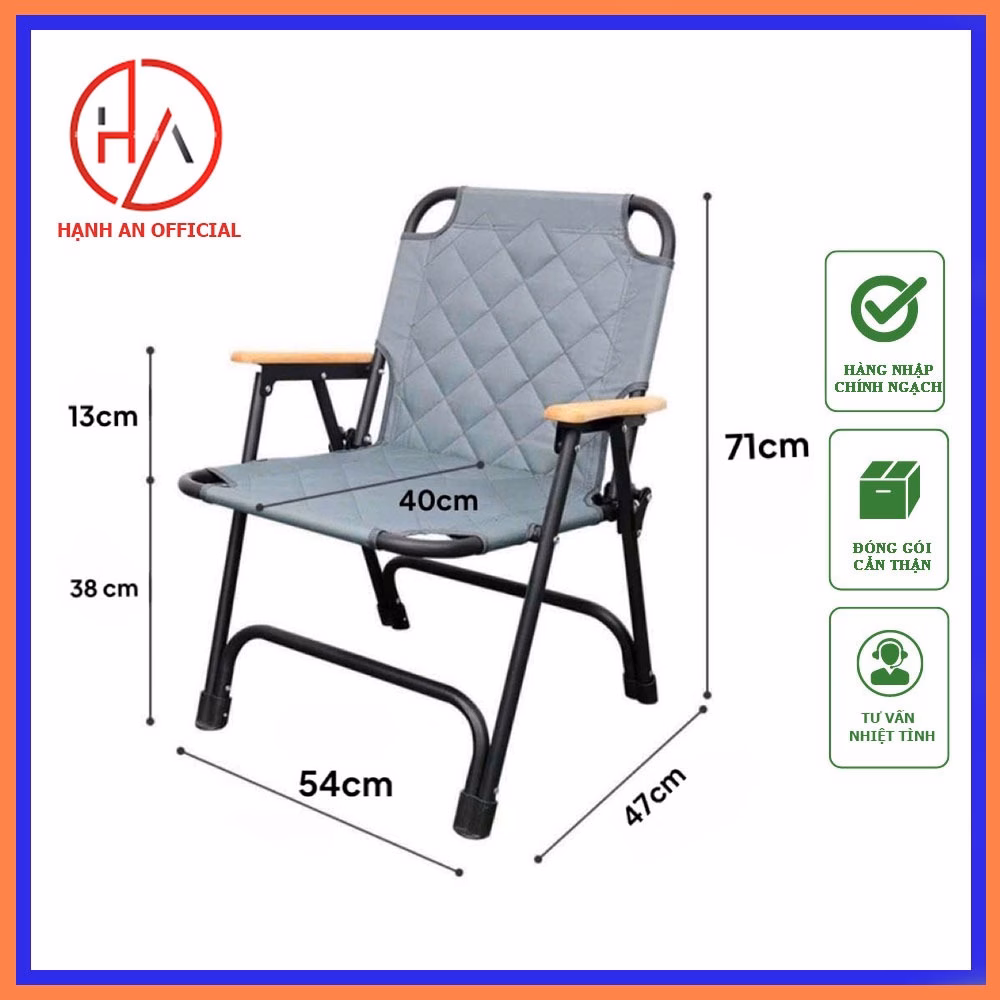 Ghế cắm trại gấp gọn mà tôi sử dụng có kích thước 71cm*54cm*47cm, rất phù hợp cho các chuyến đi du lịch, cắm trại hay dã ngoại. Sản phẩm này được làm từ chất liệu cao cấp, đảm bảo độ bền và trọng lượng nhẹ, giúp bạn dễ dàng mang theo trong hành trình.