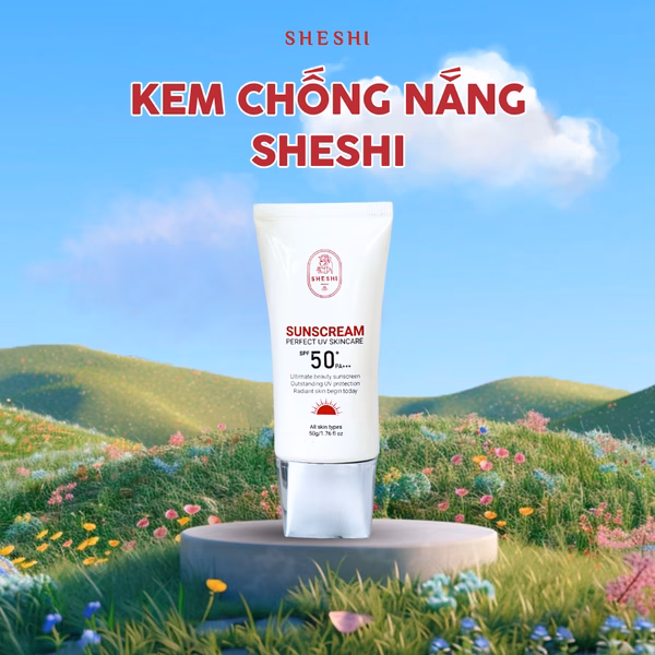 - Kem chống nắng Sheshi: Thành phần tự nhiên, công nghệ sinh học hiện đại, chỉ số SPF50+ và PA+++, nâng tông và kiềm dầu.