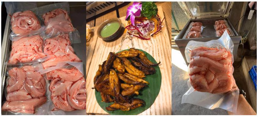Cá mút đá được làm sạch, đóng gói hút chân không để thuận tiện vận chuyển.