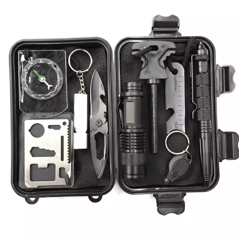 Bộ Dụng Cụ Sinh Tồn SOS 9 Món được thiết kế để đáp ứng các nhu cầu cơ bản trong các tình huống khẩn cấp. Với 9 món dụng cụ trong một bộ, nó giúp bạn tiết kiệm không gian và trọng lượng hành lý. Bộ dụng cụ này thường bao gồm các món như dao đa năng, kéo, dây thép, đèn pin, còi báo hiệu, và các công cụ khác.