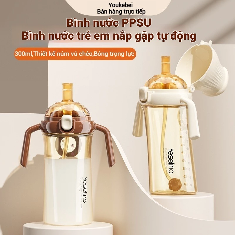Một trong những sản phẩm bình sữa chống đầy hơi đang được ưa chuộng trên thị trường hiện nay là 【Youkebei】300ml Bình sữa PPSU nắp lật bình sữa chống đầy hơi bình sữa có ống hút cho bé trai bé gái cốc đựng nước.