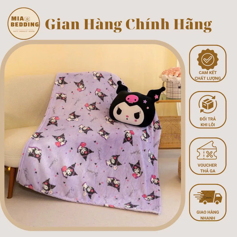 Bộ chăn gối Kuromi, Melody 3in1 chăn hoạ tiết siêu xinh là lựa chọn tuyệt vời cho những ai muốn có giấc ngủ ngon mà không cần chi trả quá nhiều tiền.