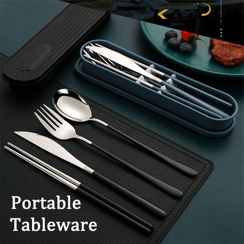 🔥 4 Dụng cụ ăn bằng thép không gỉ Katelv có hộp đựng in logo dùng đi cắm trại đang giảm giá!