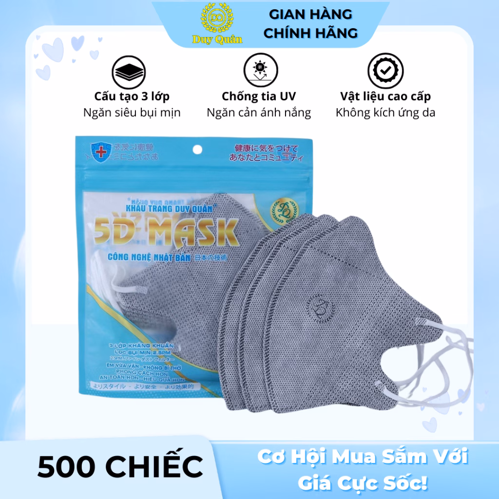 🔥 500 CHIẾC KHẨU TRANG 5D DUY QUÂN 3 LỚP KHÁNG KHUẨN, CHỐNG BỤI MỊN đang giảm giá!