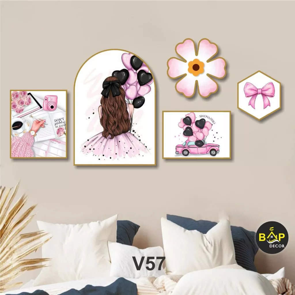 🔥 Set 5 tranh decor cô gái hiện đại dán tường trang trí phòng ngủ phòng khách, chất liệu formex 5mm kèm sẵn keo dán. đang giảm giá!
