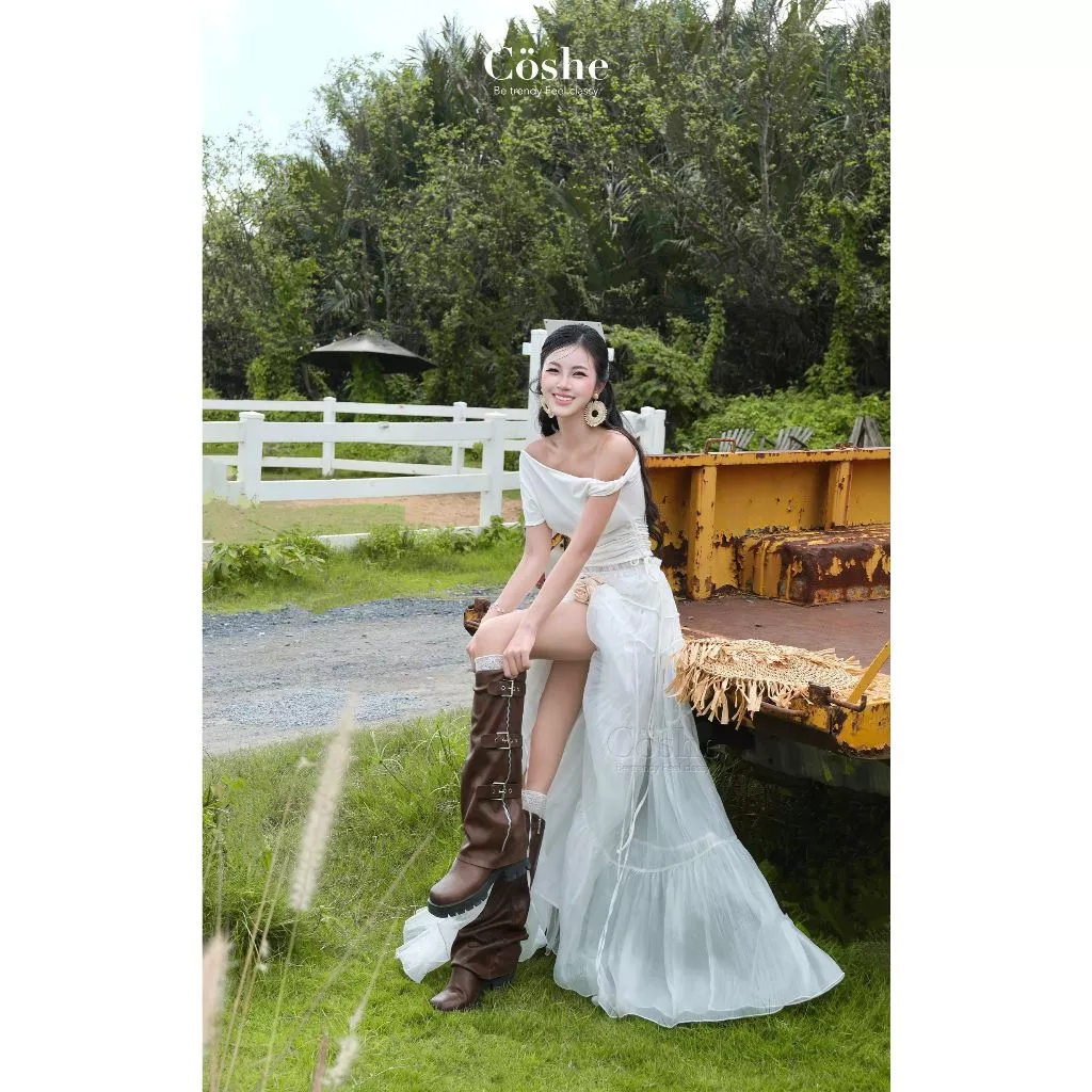 🔥 COSHE áo trễ vai rút dây 2 bên, áo Nalita Top thiết kế thun borif cao cấp vibe tiểu thư sang trọng dễ thương đi chơi tết đang giảm giá!