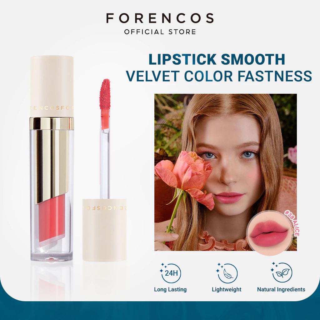 - Son môi Forencos: Có kết cấu nhung lì mịn, bền màu lâu và chứa các thành phần dưỡng ẩm giúp môi mềm mại.