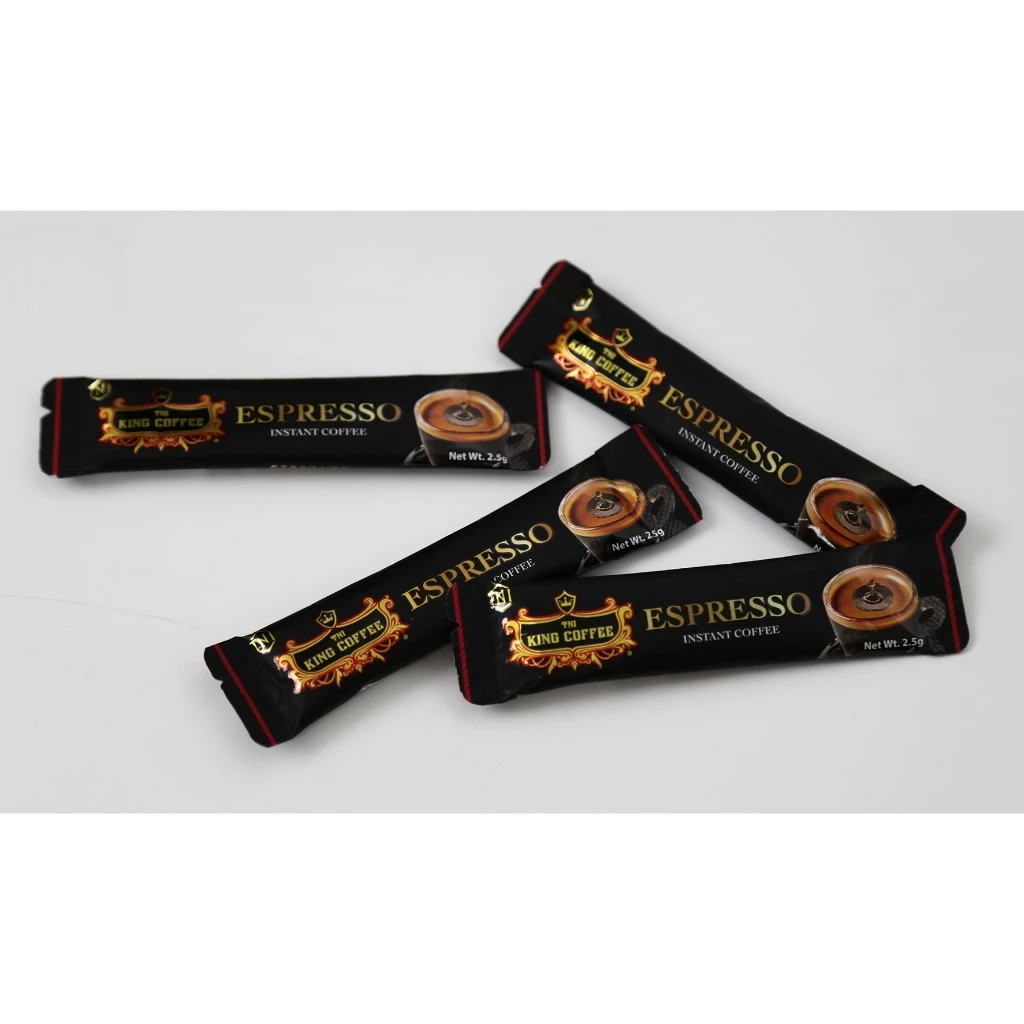 ESPRESSO King Coffee là một sản phẩm cà phê hòa tan đen được làm từ 100% cà phê Arabica chất lượng cao. Sản phẩm này có hương vị đậm đà và phong phú, với hậu vị mạnh mẽ và mùi thơm của hạt cà phê rang.