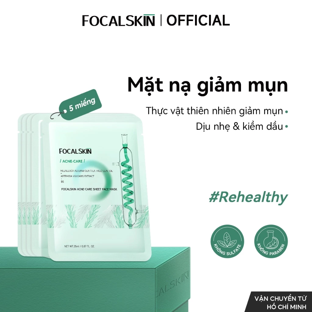 - FOCALSKIN Mặt Nạ Giấy B5: kết hợp cả cấp ẩm, giảm viêm và phục hồi da, rất phù hợp với làn da mụn.