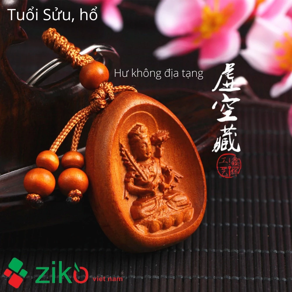 - Hổ: Mộc khắc Thổ, nên chọn móc khóa gỗ đào mặt khắc hình Phật có màu sắc tương hợp.