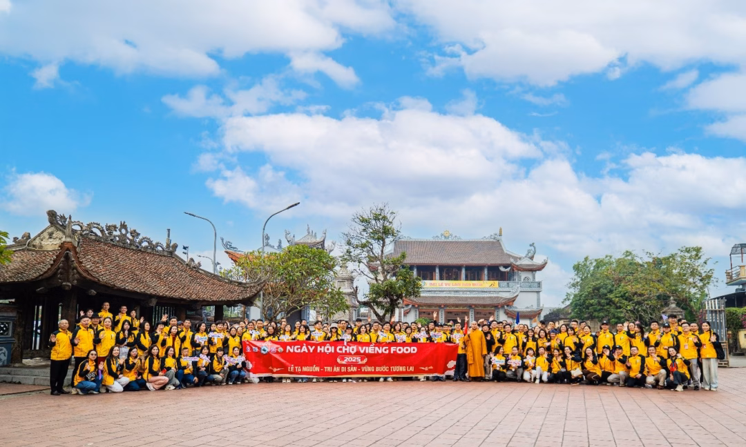 Buổi lễ mở đầu tại chùa Đại Bi, Ninh Bình, do Thượng tọa Thích Bản Thức – Trụ trì chùa chủ trì, mang không khí trang nghiêm, thể hiện lòng biết ơn sâu sắc đối với mảnh đất Chợ Viềng – nơi khởi nguồn thương hiệu. Toàn bộ hệ thống Chợ Viềng Food cùng tham gia nghi lễ, thể hiện tinh thần khiêm nhường và tri ân.