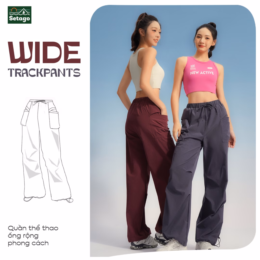 🔥 Quần Trekking nữ gió nhăn chống thấm nhanh khô – Kiểu dáng ống rộng có dây rút gấu mặc dáng Jogger phối túi hộp cá tính đang giảm giá!