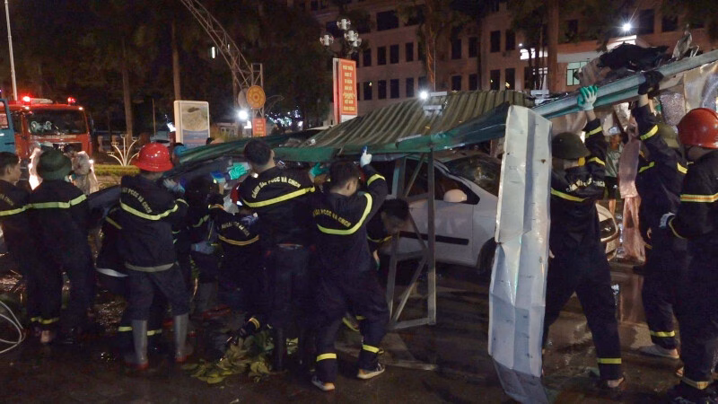 Bên cạnh đó, lực lượng Công an còn tổ chức cưa, cắt cành cây, mái tôn, cột sắt bị gãy đổ để đảm bảo an toàn cho người dân và các phương tiện giao thông. Theo thông tin ban đầu, sự việc không có thiệt hại về người nhưng có 2 xe ô tô con gặp nạn bị hư hỏng nặng. Công tác khắc phục sự cố được lực lượng Công an khẩn trương xử lý trong đêm.