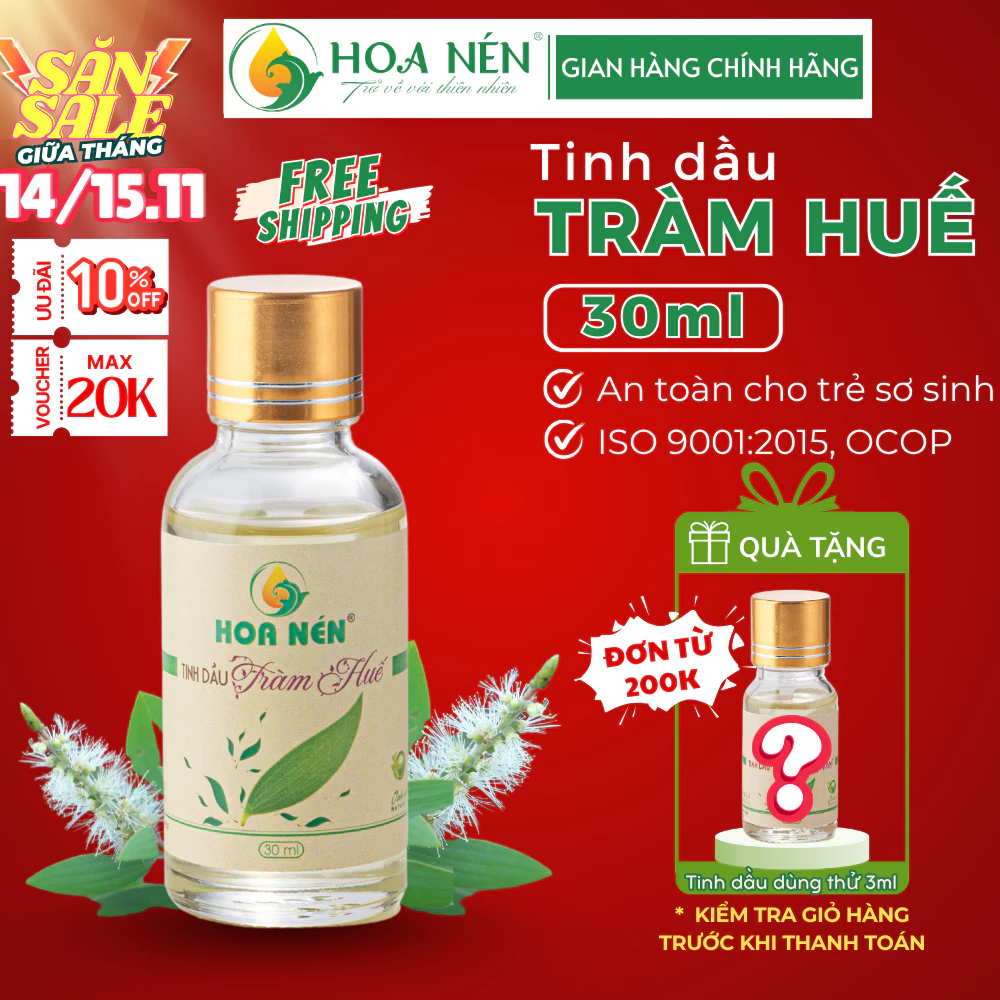 🔥 Tinh dầu Tràm Huế nguyên chất 30ml – Hoa Nén – Chuẩn VietGAP – Chăm sóc mẹ và bé – Vegan đang giảm giá!