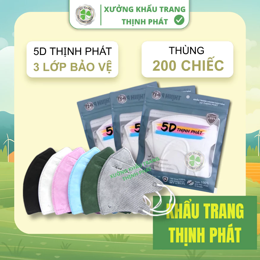 🔥 [Thùng 200 Cái] Khẩu Trang 5D THỊNH PHÁT Chính Hãng Vải 3 Lớp Kháng Khuẩn Lọc Bụi Mịn Chống Tia UV đang giảm giá!